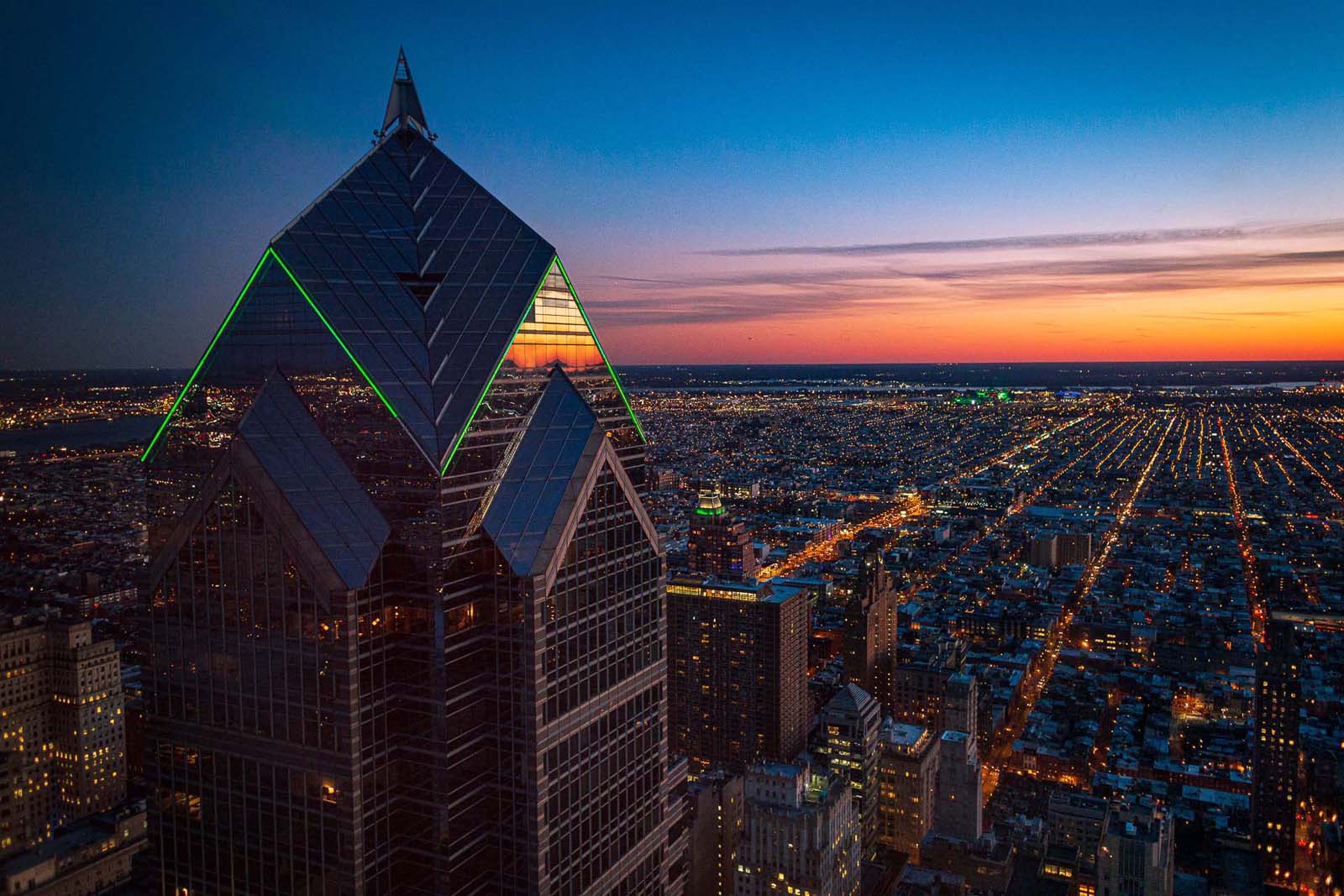The Benjamin Franklin Bridge between Pennsylvania and New Jersey.