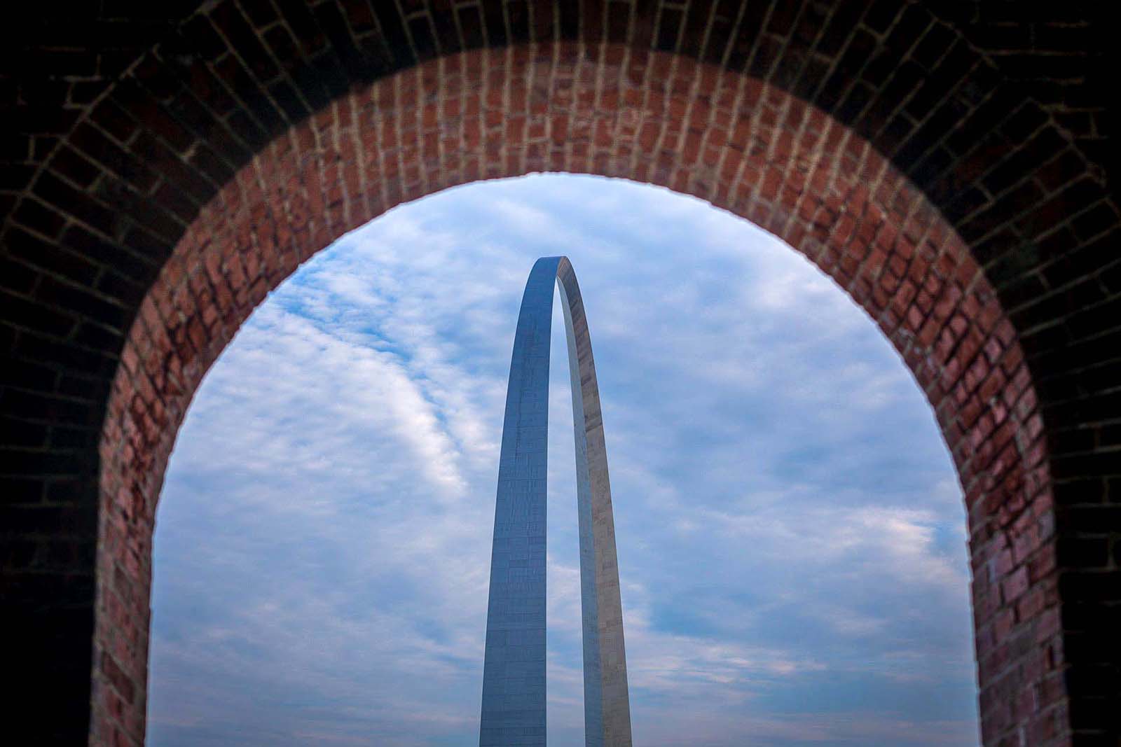 The Gateway Arch, seen from Lacledes Landing Metrolink Station.